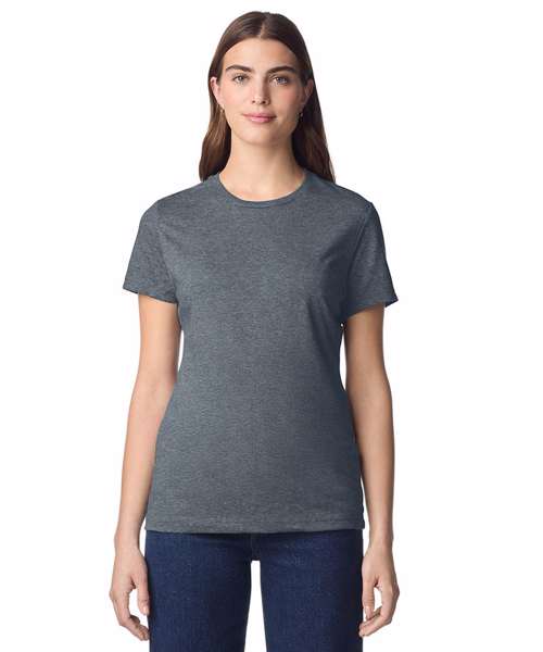Fitted silhouette with side seam. High stitch density for smoother printing surface. Tearaway label. Seamless twin-needle 1.3cm collar. Taped neck and shoulders, twin-needle sleeves and bottom hem. Also available in kids.