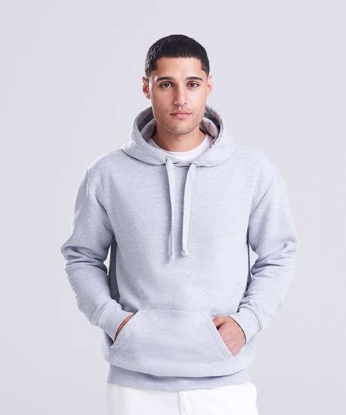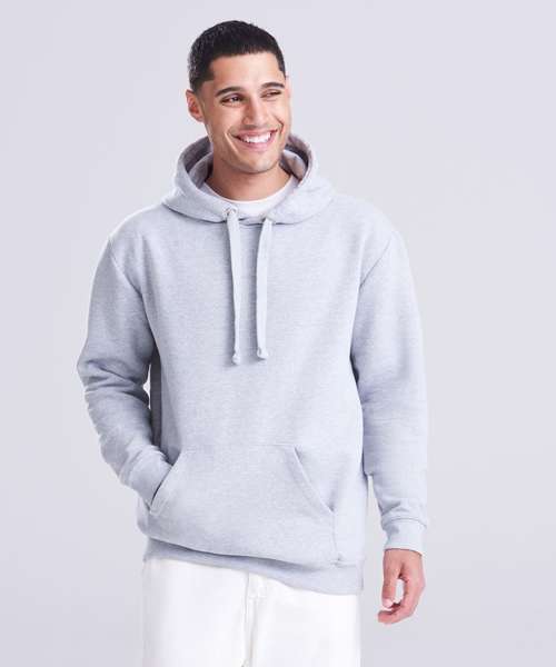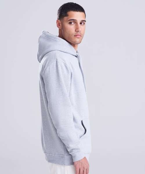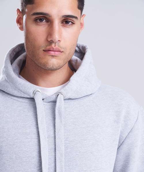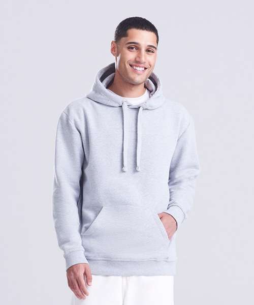 Heavyweight hoodie. Twin-needle stitching detail. Three panel hood with single Jersey inner lining. Flat lock stitching detail on pocket. Flat lace drawcords. Kangaroo pouch pocket. 2 x 1 ribbed cuffs and hem. Soft cotton faced fabric creates ideal printing surface. Simple tear out label makes it perfect for rebranding. Brushed inner fleece.
