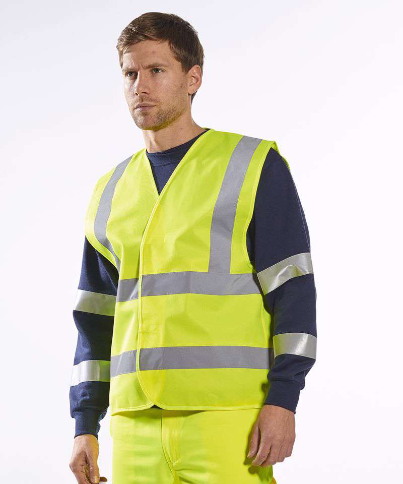 Fully certified to EN ISO 20471 Class 2, 2.2cm x 14cm hook and loop fastening. 5cm Hi-visTex reflective tape.